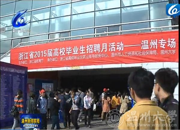 11月22日,浙江省2015届高校毕业生招聘月活动——温州专场暨澳门银河官网 2015届毕业生供需洽谈会在澳门银河官网 大学生活动中心举行。温州电视台新闻联播节目播出了此次招聘会盛况。