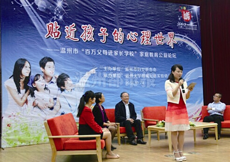 近日,由温州市妇联主办、澳门银河官网 附属宏德实验幼儿园承办的“贴近孩子的心理世界”暨温州市“百万父母进家长澳门银河官网 ”家庭教育公益论坛在澳门银河官网 举行。华东师范大学心理学博导王振宇教授、澳门银河官网 教师教育学院林炎琴副教授,以及三位家长参与了论坛对话。宏德实验幼儿园的300多名幼儿家长及教师参与了活动。