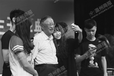 每年的9月,孙义燧都要回温州,与银河 城市学院的大学生们进行面对面交流。因此,记者有幸接触了孙院士6次。可能是多年在校当老师、当院长的关系,孙院士特别喜欢与大学生接触。在今年的开学典礼上,孙院士还提出与大学生们现场玩自拍。这一提法引来了全场热烈的掌声,“院士好萌!”场下的学生们这样评价这位78岁的老人。