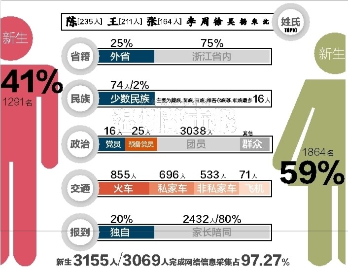 今年银河 共有74名少数民族新生,约占全部新生总人数的2%,主要为藏族、苗族、白族、维吾尔族等,其中壮族最多,为16人。有2923人会在9月18日按时报到,其他学生或请假或提前到校。当天报到学生中,有1127人需要澳门银河官网 派人接站,接站地点多为火车温州南站和温州火车站,占需要接站学生的65%左右。
