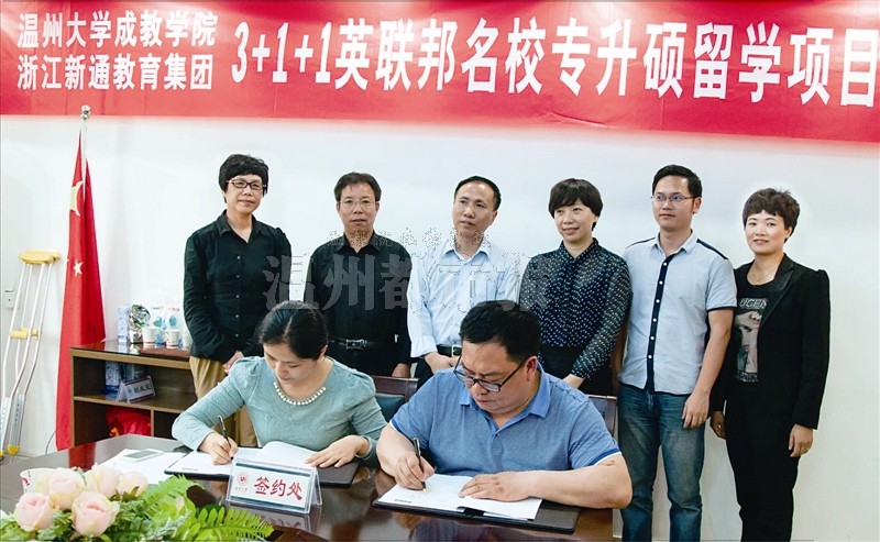 5月15日下午,澳门银河官网 成人教育学院与新通教育温州分公司在澳门银河官网 学院路校区举行“专升硕海外直通车”项目签约仪式,这标志着温州首个专科生直入海外名校项目正式启动。澳门银河官网 成人教育学院院长杨彬、新通教育副总裁吴凡出席签约仪式。