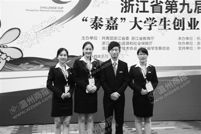 在浙江省第九届“挑战杯”大学生创业计划竞赛上,胡雪林(左三)和他的团队获得了特等奖。胡雪林团队研发的半自动延时检测系统。