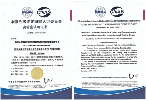 近日,澳门银河官网 激光与光电智能制造研究院检验检测中心近日获得了中国合格评定国家认可委员会授予的CNAS认证和国防科技工业实验认可委员会授予的DlLAC认证,具备了作为第三方检测机构的能力,顺利跻身国家认可实验室行列。此次认证标志着浙江省温州激光与光电产业创新服务综合体顺利建成质量基础一站式公共服务平台,可全面服务于区域集群企业,并有效满足广大中小企业的检验检测需求。