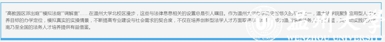 这间瓯海区劳动仲裁委高教园区派出庭,2016年成立至今,主要审理茶山街道、南白象街道、丽岙街道、仙岩街道、三垟街道、梧田街道等范围内的劳动人事争议案件,是国内首家依托高校建设的劳动人事争议仲裁庭,被国家人社部作为全国典型加以推荐。这所仲裁庭由法学院教师为主,并充分地引导学生以书记员、仲裁员助理以及旁听等多种形式参与仲裁。