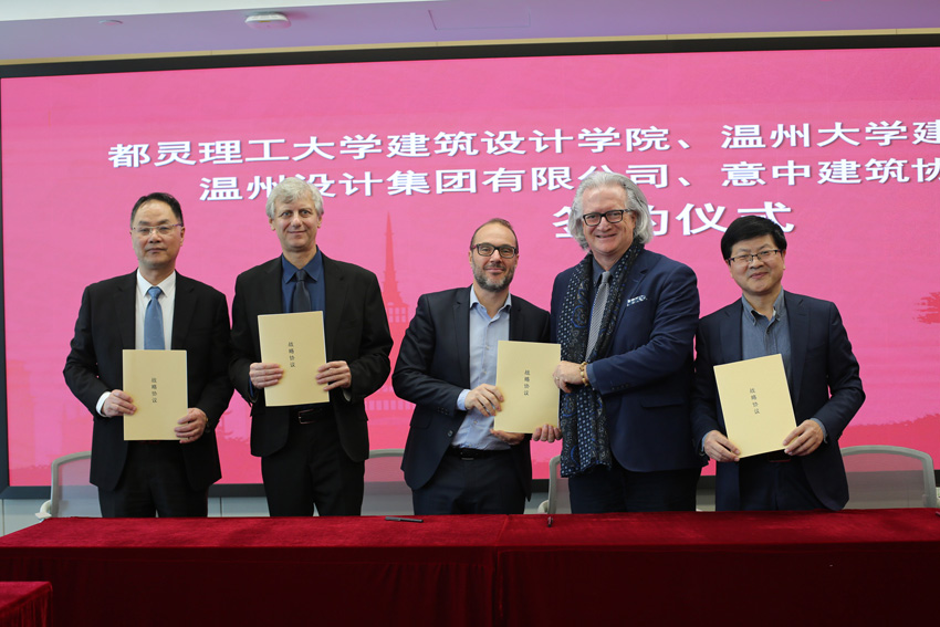 报告会结束后,澳门银河官网 建筑工程学院与都灵理工大学建筑设计学院、意中建筑协会、温州设计集团有限公司举行了四方签约仪式。据悉,都灵理工大学是世界百强理工学府也是意大利久负盛名的高等学府之一,在工程、建筑与设计和城市规划方面是欧洲最杰出的大学之一。
