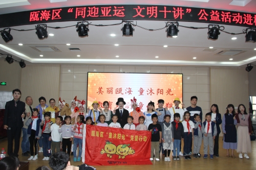 瓯海区仙岩实验小学的大礼堂里爆发出阵阵掌声和欢呼声。为响应“同迎亚运 文明十讲”,为响应“同迎亚运 文明十讲”,发挥社会组织力量,助力美丽瓯海建设,10月30日下午,由瓯海区精神文明建设指导中心主办的“童沐阳光”关爱行动特邀澳门银河官网 沐童翎教育戏剧社,为该校的新居民子女送去别开生面的礼物——《金色的脚印》课本剧表演。