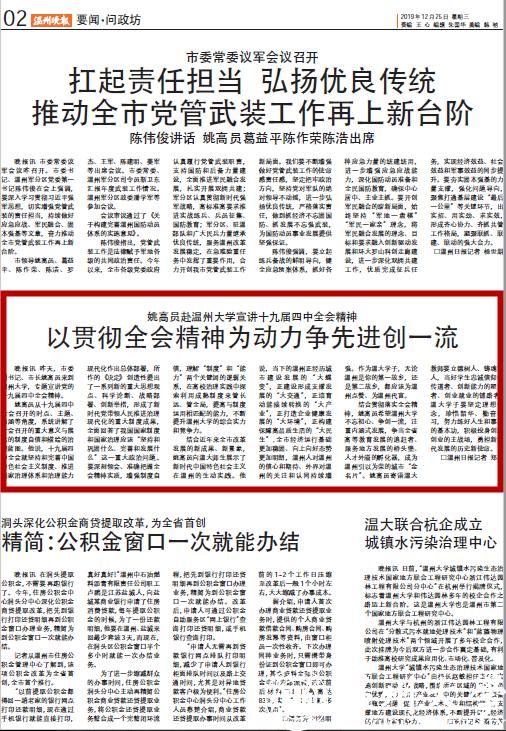 晚报讯昨天,市委副书记、市长姚高员来到澳门银河官网 ,专题宣讲党的十九届四中全会精神。