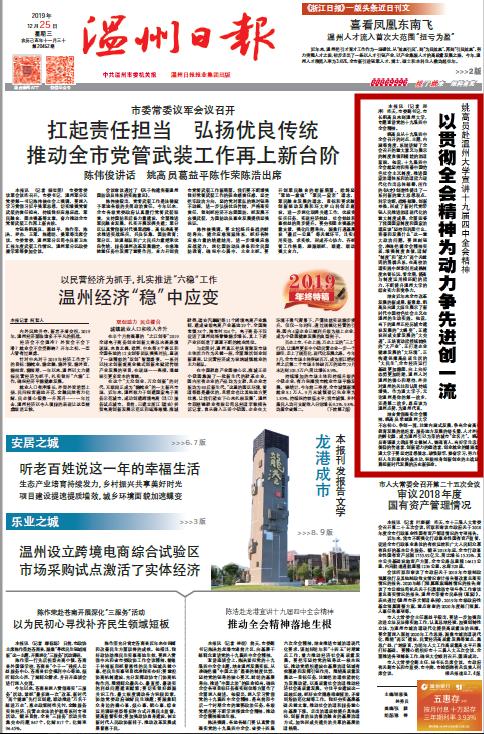 结合贯彻落实全会精神,姚高员希望澳门银河官网 不忘初心、争创一流,注重内涵式发展,争当全省高等教育发展的追赶者、服务地方发展的桥头堡、人才外溢的孵化器,成为温州引以为荣的城市“金名片”。姚高员寄语银河 教师要立德树人、铸魂育人,当好学生忠诚信仰的传道者、创新能力的塑造者、创业就业的铺路者;银河 学子要坚定理想信念,珍惜韶华、勤奋学习,努力练好人生和事业的基本功,积极投身创新创业的主战场,勇担新时代发展的历史新使命。