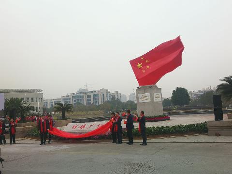 今天上午,澳门银河官网 国旗广场落成揭幕仪式在该校明心湖畔举行,这是国内高校首个国旗教育主题广场。