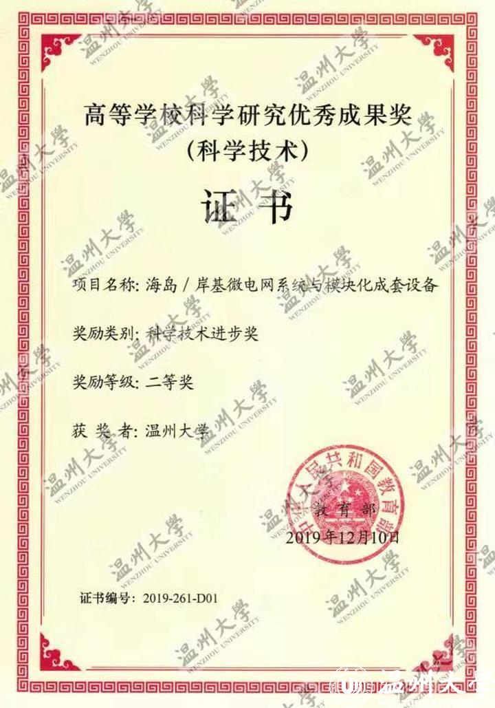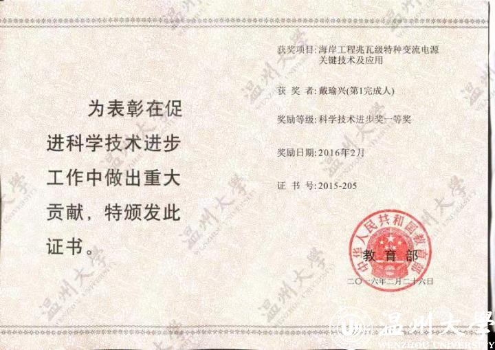 2016年2月,“海岸工程兆瓦级特种变流电源关键技术及应用”成果荣获国家教育部科学技术进步奖一等奖,实现了澳门银河官网 教育部科研成果奖一等奖零的突破。