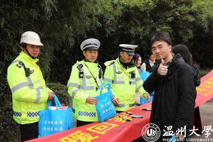 出发现场,温州市公安局交通管理局的交警同志在现场对每一辆校车和每一位驾驶员进行“发车体检”,重点检查车辆保险、年审、违章等情况,并对校车驾驶员的证件进行检查,依次进行酒精呼吸测试,确保春运护送的校车、驾驶员状态良好。同时,交警部门在发车处设立了交通安全宣传站点,针对大学生出行特点,通过展板海报、扫码互动、签字承诺和现场讲解电动车交通事故案例以及乘坐“黑车”、“改装车”的安全隐患等方式将“平安锦囊”送至每个学生手中。“平安锦囊”里不仅有春节福、春联,还有电动车出行安全手册,为学生们送上新春祝福的同时,也在提醒他们返乡路上遵守交通法律法规,带着平安回家过年。