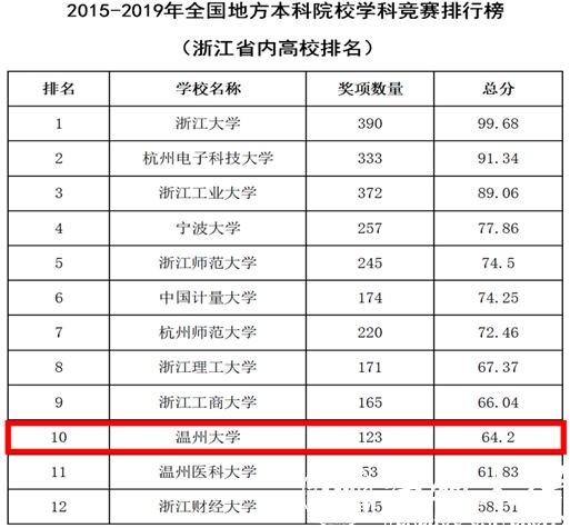 近日,全国普通高校学科竞赛排行榜(2015-2019年)发布,澳门银河官网 表现优异,在全国普通高校中位列第144,在全国地方本科院校中位列第84,在浙江省所有高校中位列第10。