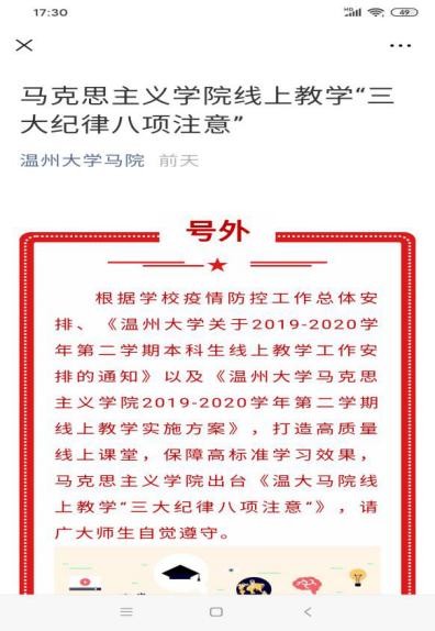 据悉,开学几天来学生总体思政课线上出勤率高,多数班级达100%,且线上教学秩序良好,学生对线上教学的适应度和好评度高。接下来,思政课老师将进一步创新思政课在线教学方式,注意采取启发式教学,积极开展好交流、研讨、答疑和考核等工作,调动学生学习积极性、主动性,精细、精准落实教学任务,确保学生按期保质保量顺利完成学业。
