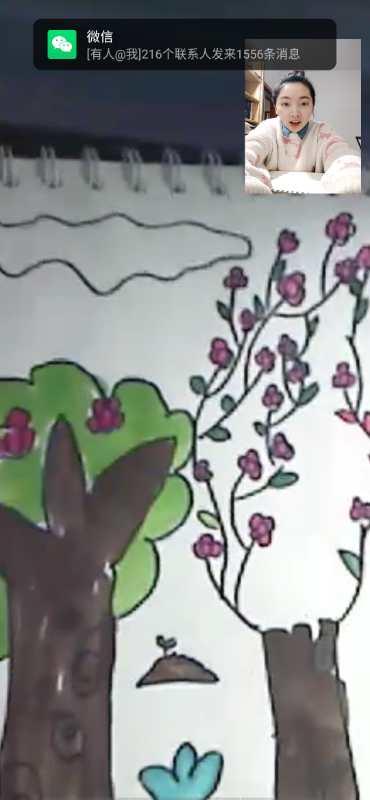 “我这边对接的是一名幼儿园大班的小朋友,一周开展两次教学,第一次45分钟,第二次有近一小时。授课内容因学生即将升小学一年级,除了教家长要求的绘画,还尽可能做一些幼小衔接,教学强度难易程度适中,孩子和家长都乐意接受。为了方便教学,自己手动将自拍杆和钢琴绑在一起固定,克服了直播设备缺乏的困难。”教育学院2017级学前教育(师范)专业本科生王鑫慧同学介绍了自己的教学方法。