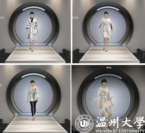 戴上3D眼镜,看着虚拟模特身着设计的时装款款而来,坐在办公室、站在门店甚至居家就能仿佛置身于走秀现场,观赏精彩的时装秀视觉盛宴。据陈明艳教授介绍,虚拟仿真时装秀是模拟传统服装设计开发到发布的一系列过程,技术团队突破传统服装产品开发繁杂流程,以服装艺术设计与高端数字3D虚拟科技为支撑,集传统服装的制版设计、虚拟缝制、试穿检测、面料仿真、动态走秀为一体,直接将设计、样板与缝制联动,生成3D虚拟样衣试穿效果。并且通过虚拟走秀及轮秀编制,让顾客感受到影院式的虚拟时装秀。