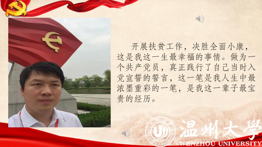来自本科生党支部的陈嘉滢向大家展示了永嘉一个偏远山村——溪下乡刘山村传承非物质文化遗产——马灯戏的故事。她以该村支书崔秀明的音频原话结尾,使全体师生感受到了基层干部的艰辛与不易。