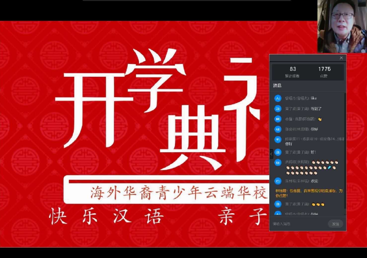 4月20日晚上8点,继海外华裔青少年云端华校公益名师大讲堂活动成功举办之后,由温州市教育局、澳门银河官网 和温州市侨联联合主办,澳门银河官网 侨留联会、澳门银河官网 欧洲华文教育研究所承办的澳门银河官网 海外华裔青少年云端华校第二期华文班顺利开营。