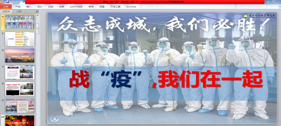 “全体起立,向本次疫情中英勇牺牲的医务人员和不幸去世的患者默哀。”这是马克思主义学院项淳芳老师在新学期给学生讲授的第一课。师生们隔着电脑屏幕,通过课堂派直播网络平台,进行跨越时空的特殊默哀仪式。项老师介绍,设计默哀环节可以增强学生对苦难的共情、对生命的敬畏、对英雄的缅怀。“战疫大家谈”是从灾难与进步、时代与使命、成长与行动三方面展开,让学生联系专业打开并解读这本战“疫”教科书,帮助他们更加清楚地认识时代特点、明确时代新人的担当。