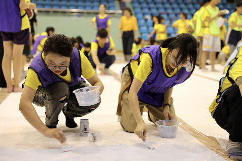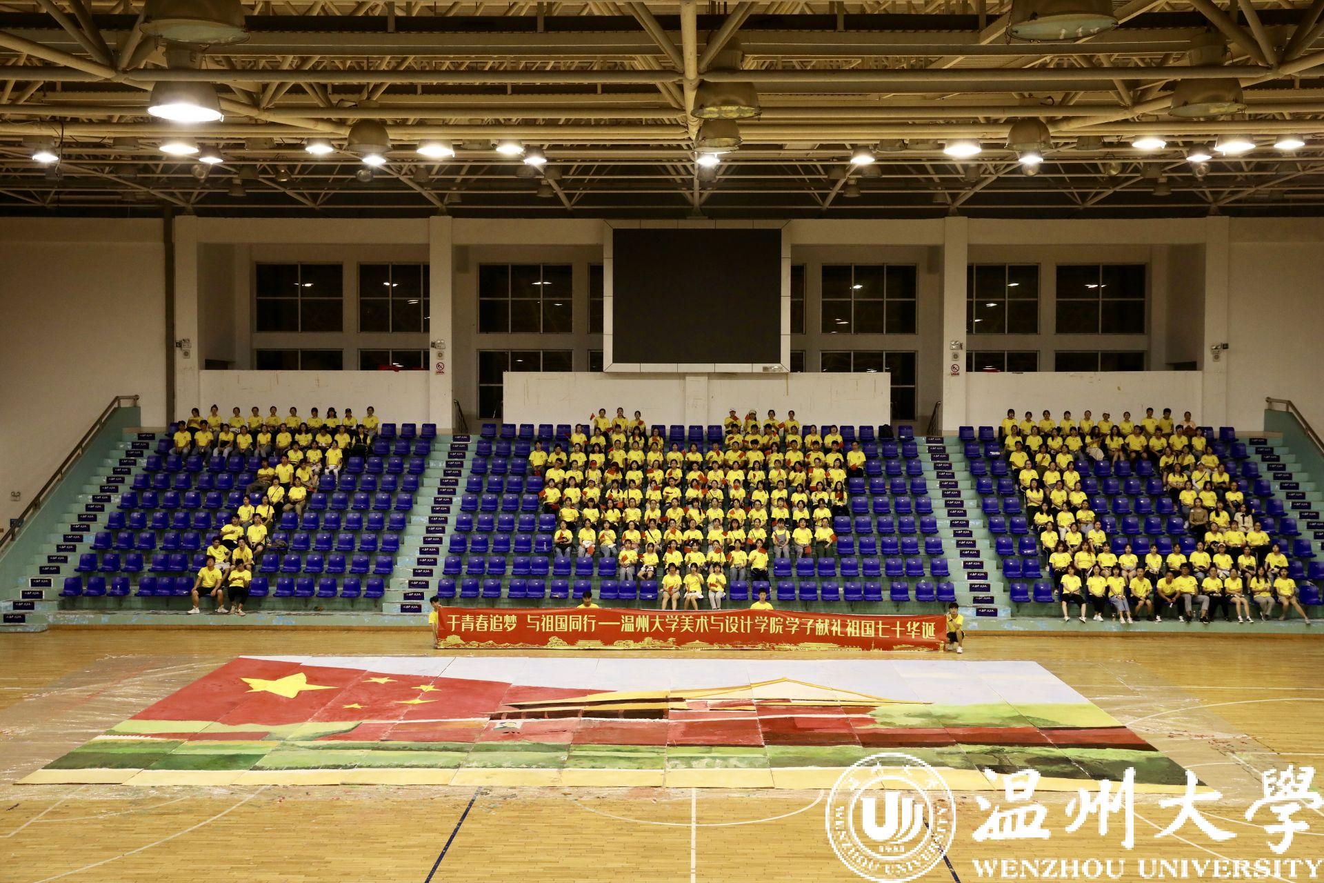 随后,266名新生齐聚银河 篮球馆,在澳门银河官网 这个崭新的起跑线上,他们用手中的颜料与画笔,用艺术专特长与热情,共同绘制10*16m国庆主题巨画《我爱祖国》,画出了浓墨重彩的一笔。最后,在266人、花费3小时共同完成的画作旁,全体新生摆出“70”字样,齐声喊出“祝伟大祖国繁荣昌盛”,献礼祖国70华诞,展现了银河 青年学子的爱国情怀和使命担当。