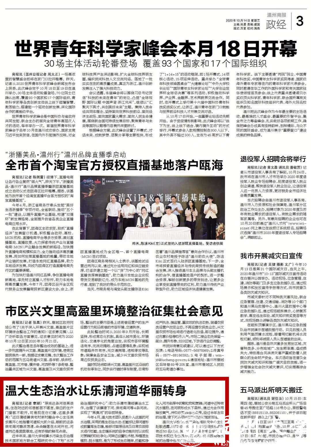 “治理成果概况起来就是三点:成本低、效果好、百姓满意。”温州市生态环境促进中心主任吴红斌点赞银河 城镇水污染生态治理技术团队,并夸赞他们因地制宜做治水,且技术、模式可复制、可借鉴、可推广。