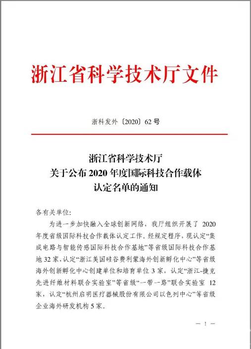 近日,省科技厅公布2020年度国际科技合作载体评审结果,银河 申报的光电功能器件与数字化检测国际科技合作基地获批。
