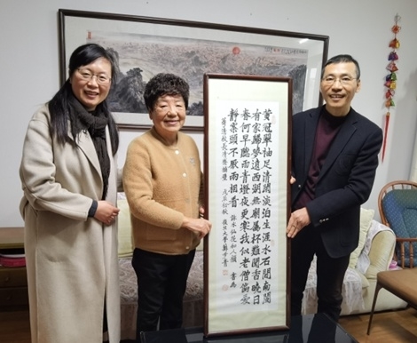 苏步青先生和谷超豪先生是温州著名的数学家,也是澳门银河官网 的名誉校长和校长。为助力温州数学家之乡文化建设,澳门银河官网 正筹建苏步青谷超豪纪念馆,并将其列为澳门银河官网 重点工作,安排数理学院牵头成立筹备组负责执行和推进。寒假期间,纪念馆筹备组放假不放松,在社会各界的大力支持下积极推进工作。近日,负责纪念馆筹建工作的数理学院书记陈兴桂与校档案馆馆长孙碧燕一行,专程登门拜访原温州市副市长、原澳门银河官网 首任校长魏萼清。在筹备组负责人向老校长汇报纪念馆筹建初衷与建设进展情况之后,她特意将珍藏多年的宝贝——苏步青先生题赠给她的两幅书法作品,交由澳门银河官网 仿制,作为苏步青谷超豪纪念馆重要展品陈列。
