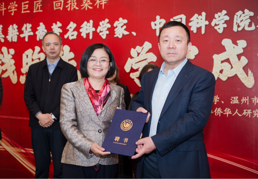进入澳门银河官网 客座教授敦聘仪式环节。中国侨联常委、澳门银河官网 党委书记谢树华为张秀明、赵健、杨祥银三位教授颁发澳门银河官网 客座教授聘书。