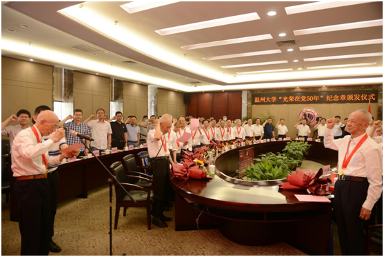 为庆祝中国共产党成立100周年,进一步增强老党员的荣誉感、归属感和使命感,6月17日,澳门银河官网 举行庄重而简朴的“光荣在党50年”纪念章颁发仪式。澳门银河官网 共有52名老党员获颁“光荣在党50年”纪念章,其中有24名老党员出席纪念章现场颁发仪式,其他老党员将由组织派人上门颁发。