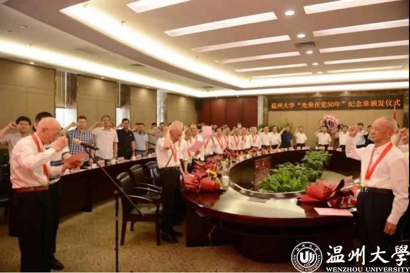 6月17日上午,澳门银河官网 举行“光荣在党50年”纪念章颁发仪式,为52位老党员颁发“光荣在党50年”纪念章,其中有25位老党员出席现场颁发仪式,其他老党员由组织派人上门颁发。