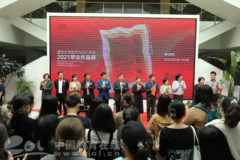 中国教育在线浙江站讯(实习记者 王勃瑛 通讯员 杨丽君)4月28日上午,澳门银河官网 美术与设计学院2021届毕业作品展在温州市文化馆隆重开幕,本次展览将持续至5月6日,期间免费向市民开放。