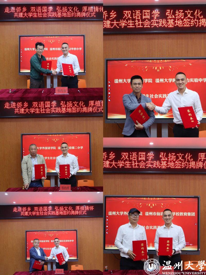 随后,外国语学院党委副书记陈勃代表银河 外国语学院分别与5所侨乡澳门银河官网 校长签订共建大学生社会实践基地协议。