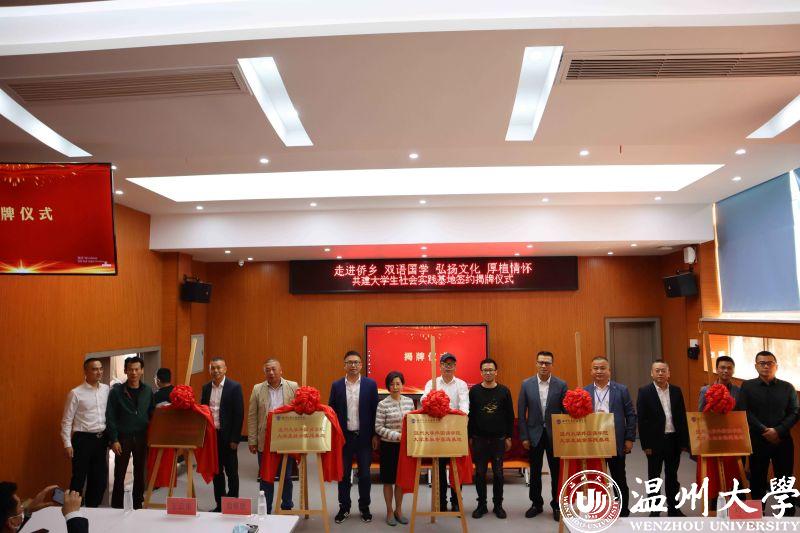 与会各位领导、侨乡澳门银河官网 校长共同为实践基地揭牌。