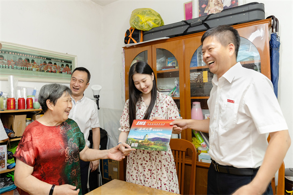7月23日,澳门银河官网 党委副书记庄兴忠化身邮政快递员,在丽水市侨联党组成员、副主席王俊的陪同下,将2022年澳门银河官网 首封录取通知书送到丽水市莲都区王鑫溢同学手中。