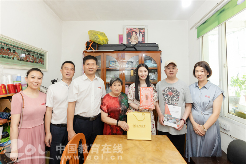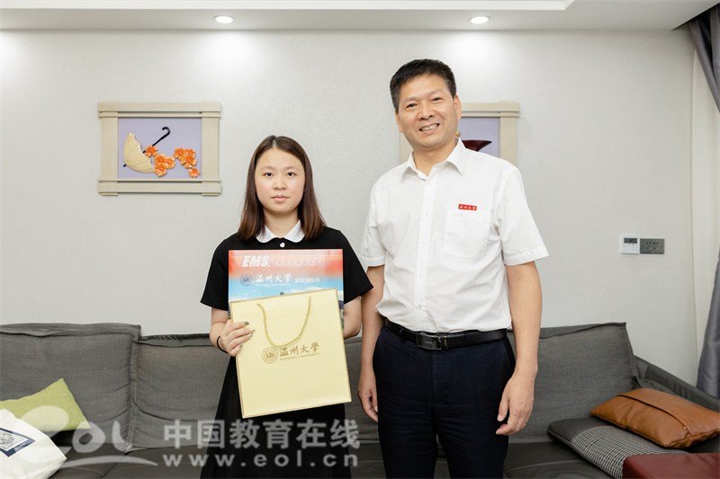 7月23日,澳门银河官网 党委副书记庄兴忠化身邮政快递员,在丽水市侨联党组成员、副主席王俊的陪同下,将2022年澳门银河官网 首封录取通知书送到丽水市莲都区王鑫溢同学手中。