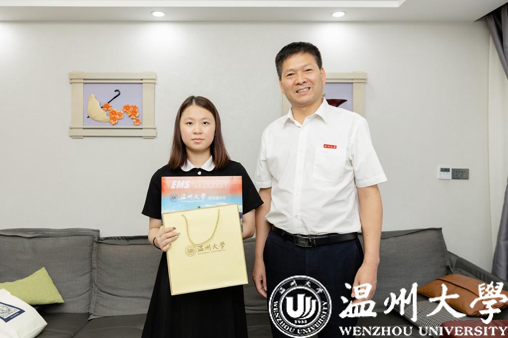 7月23日,澳门银河官网 党委副书记庄兴忠化身邮政快递员,在丽水市侨联党组成员、副主席王俊的陪同下,将2022年澳门银河官网 首封录取通知书送到丽水市莲都区王鑫溢同学手中。