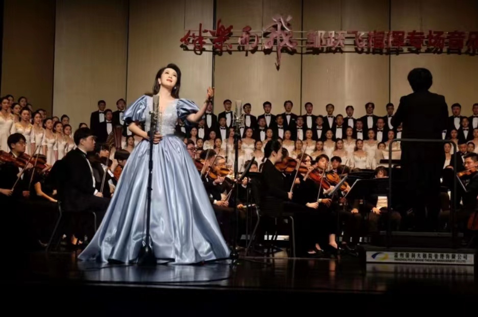 难忘师生情。音乐会上,温馨的《在十八岁生日晚会上》歌声令人感动。邹跃飞在从艺从教四十余载的时光里,培养了一批批艺术人才,成了温州文艺界宝贵的富矿。现场多名学生代表上台向他献花,感恩他的精心培养。最后,音乐会在《不忘初心》的优美歌声中圆满落幕。
