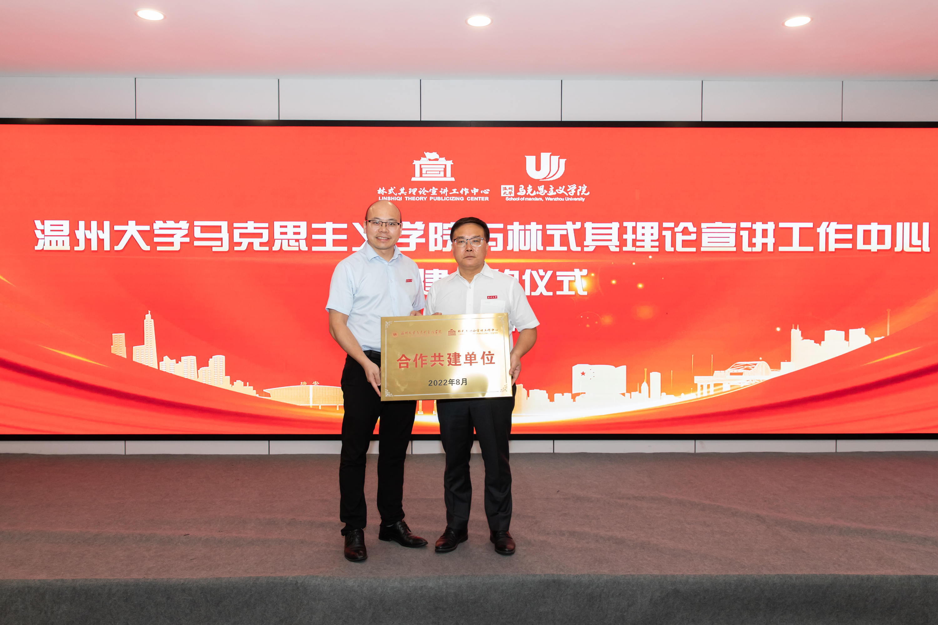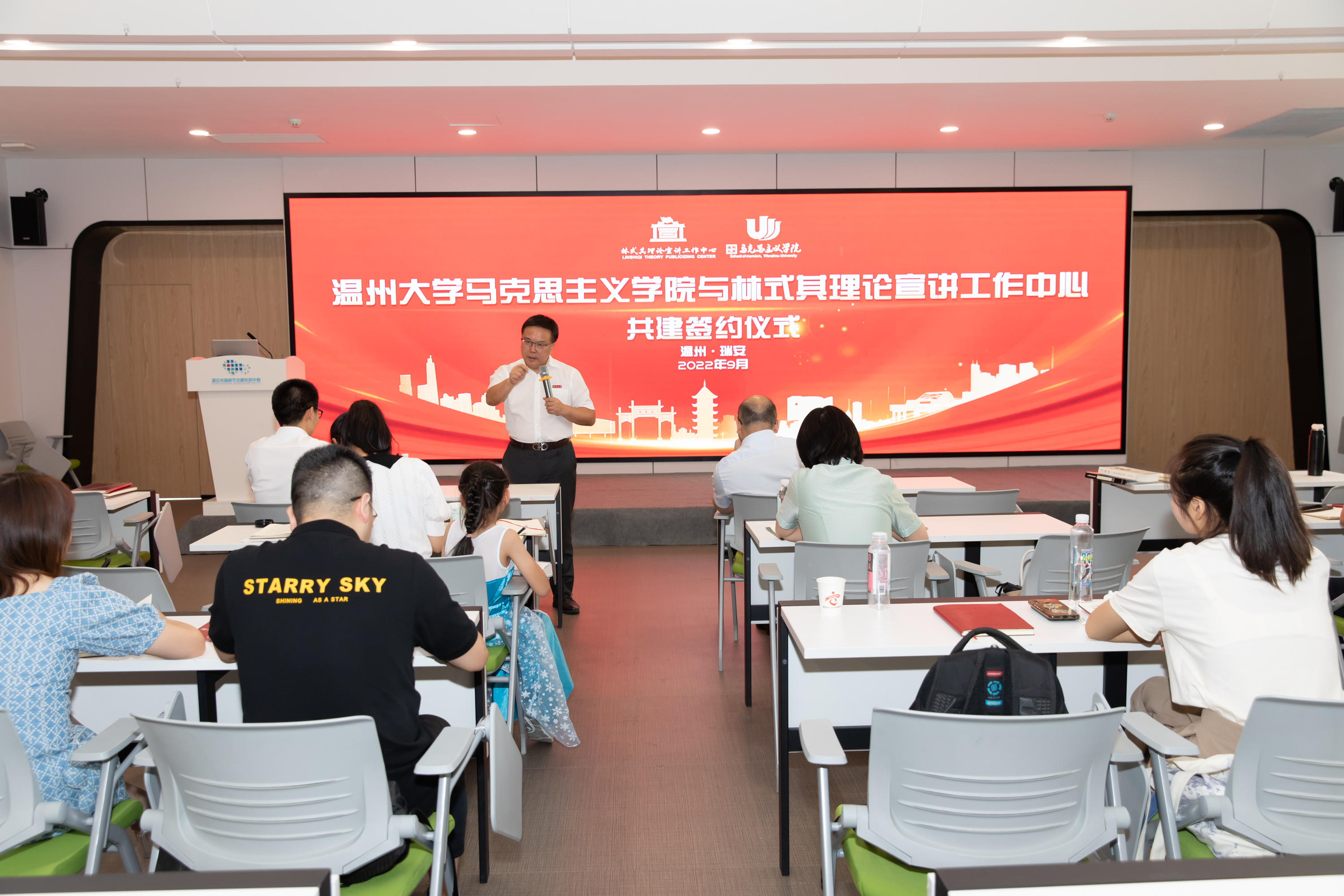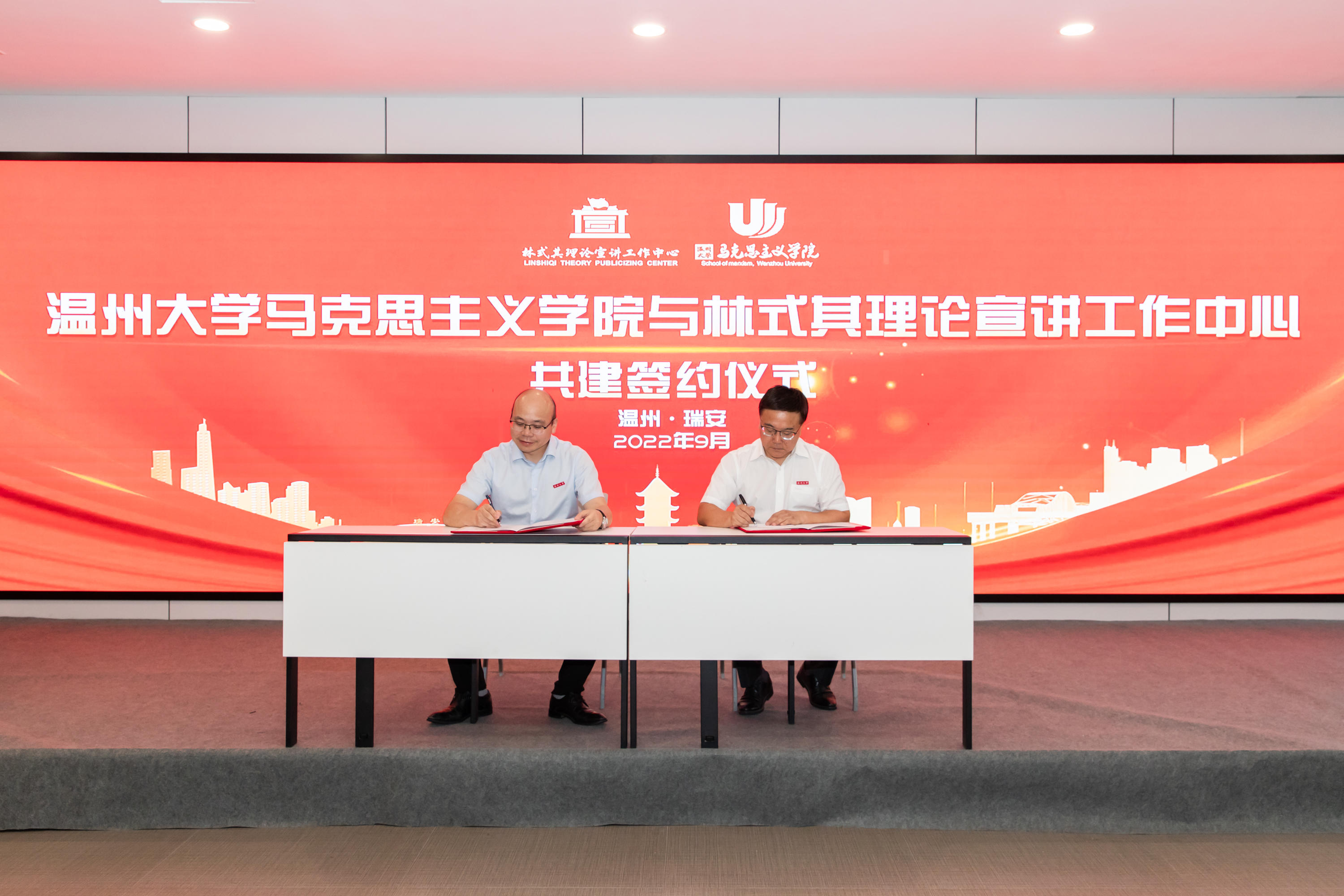 当天在瑞安市新时代文明实践中心,澳门银河官网 马克思主义学院院长卓高生和林式其理论宣讲工作中心创办者林式其,共同签署澳门银河官网 马克思主义学院与林式其理论宣讲工作中心合作共建协议书,银河 马克思主义学院聘请林式其为客座教授。接下来,双方将共同探索建立高校与基层宣讲人才互派交流、宣讲活动联动举办、理论研究共研共享的机制,打造理论宣讲的全新阵地。