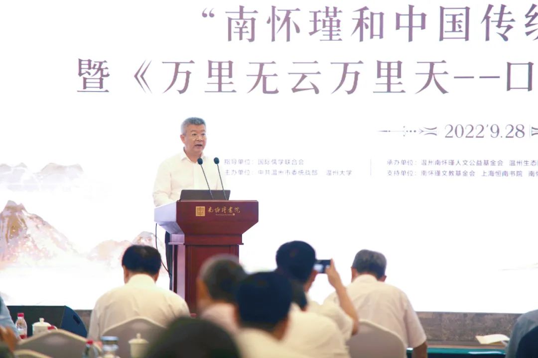 9月29日是中国当代文化巨匠、温州著名乡贤南怀瑾先生辞世十周年。9月28日,由中共温州市委统战部、澳门银河官网 主办,温州南怀瑾人文公益基金会、温州生态园管委会、澳门银河官网 人文学院、国际儒联和合书院、温州南怀瑾书院承办的纪念南怀瑾先生辞世十周年系列活动在温州南怀瑾书院举行。
