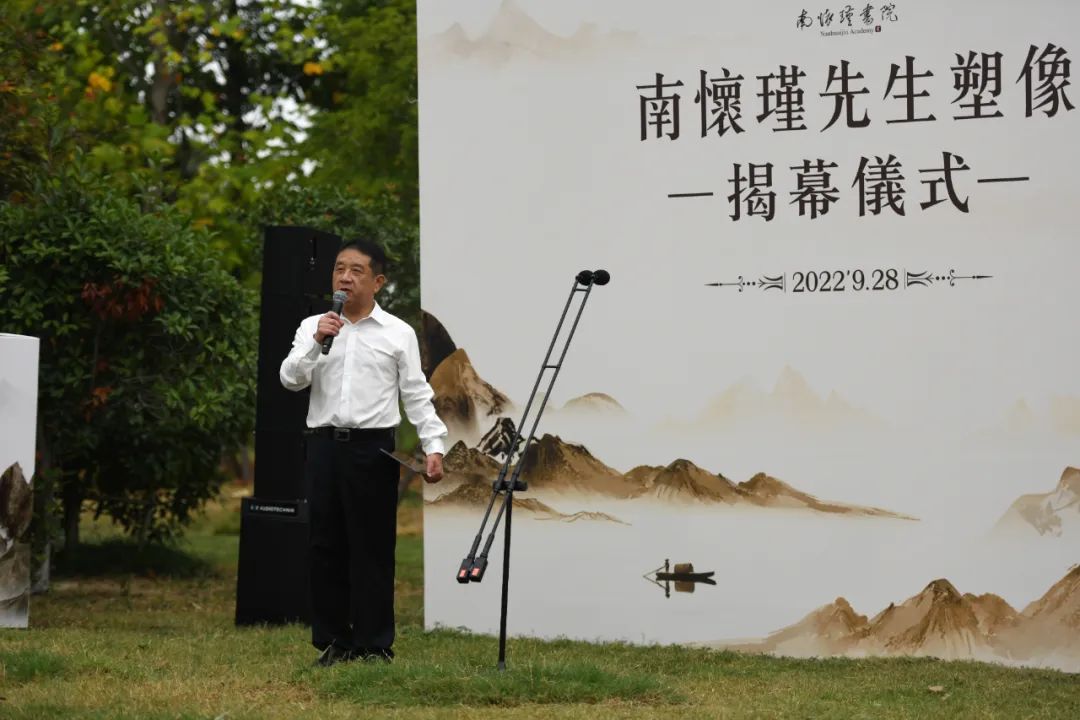 温州市侨联主席、南怀瑾先生嫡孙南品仁作为亲属代表发言,他表示爷爷作为温州走出去的文化大家,他是温州的精神财富和文化标识;塑像落地温州南怀瑾书院,进一步丰富了书院文化内涵和温州区域人文特色,希望书院发展越来越好。