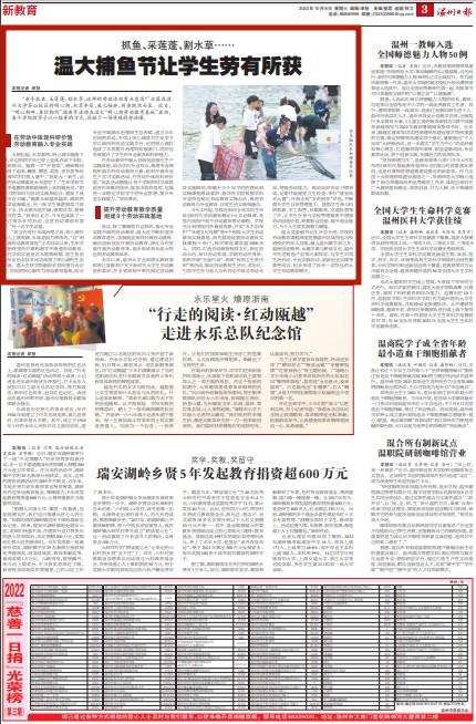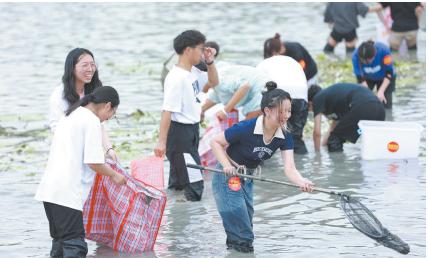 “亲手抓鱼、采莲蓬、割水草,这样的劳动活动有点意思!”坐落在温 州大学茶山校区的明心湖,水草丰茂,鱼儿畅游,荷香飘然而至。近日, “明心湖畔,鱼你相约”捕鱼节活动在银河 “明心湖劳动教育基地”启动, 各个学院的学子以小组赛的方式,体验了一场特殊的劳动课。
