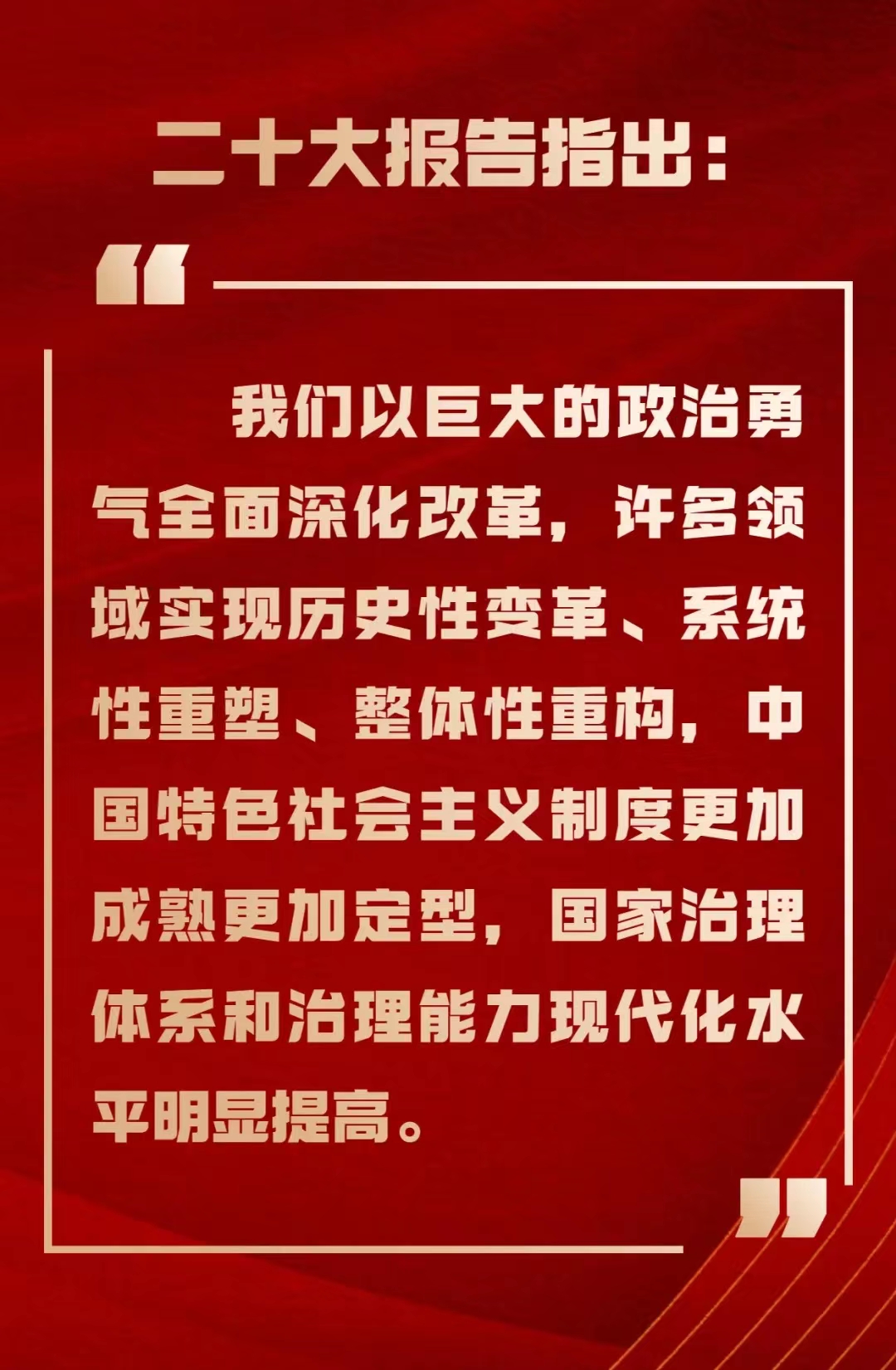 认真聆听习近平总书记所作的二十大报告,我有三个很深的感悟。一是战略目标精准,实现有底气。改革开放40多年的发展成就,综合国力大幅提升,百姓生活极大改善,人才科技军力外交等都奠定了雄厚的基础。二是以人民为中心的发展深得民心。社会主义现代化建设事业是亿万人民的根本事业,抛开人民群众的利益,没有人民广泛参与的事业必将是空中楼阁。三是注重发挥党的核心领导作用。社会主义现代化建设必须坚持党的领导,这是十四亿人口大国的使命,这是百年未有之大变局的舞台,这是百年成熟大党再创辉煌的时代!