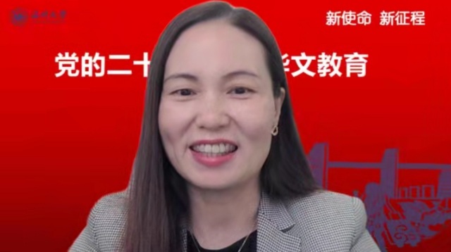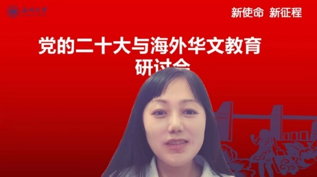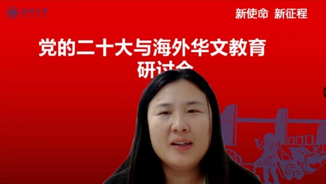 会上,澳门银河官网 华侨学院院长、澳门银河官网 欧洲华文教育研究所所长包含丽做党的二十大关于华文教育和文化传承专题解读。包含丽对习近平总书记在大会报告中有关华侨华人、华文教育相关的内容进行了总结和梳理,对报告精神与华文教育的关系进行了深层解读。她指出,华文教育在党和国家发展的新征程中,明确了新目标、新方向、新地位,同时也肩负了新使命。她认为,华文教育未来可期,前景美好。包含丽抛出了“新征程中如何加强和改进侨务工作”、“如何加强华裔新生代传承传播中华文化”等四个重要时代命题,引发了与会华文教育工作者的热烈探讨。