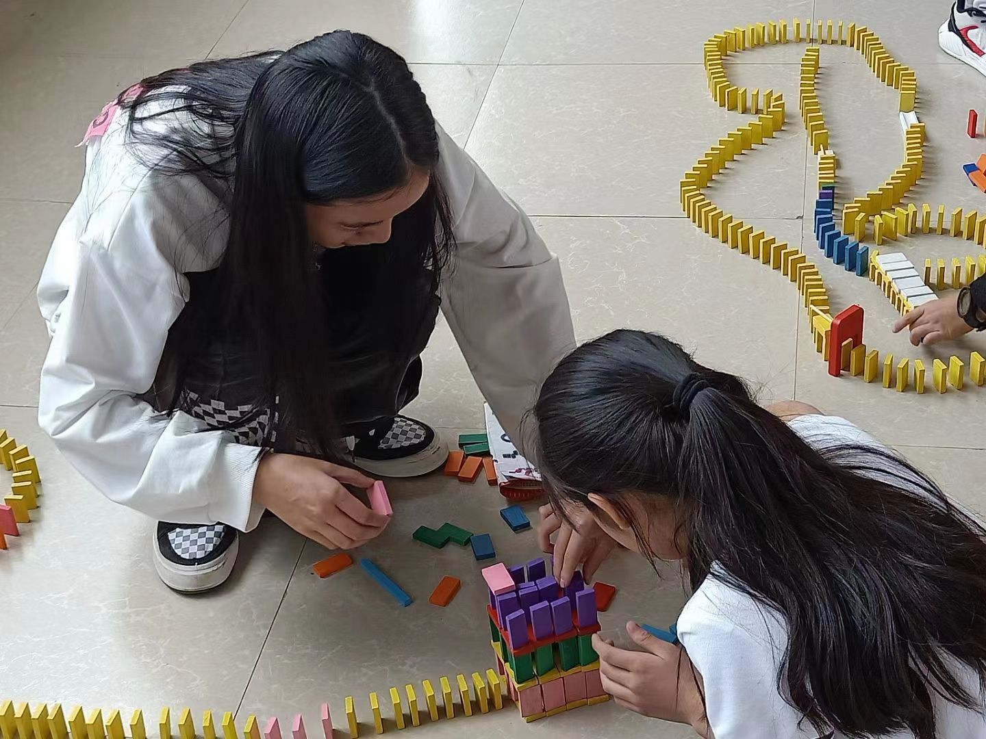 “123开始!”,小朋友手指一动,刷的一声多米诺骨牌应声倒下,课堂上又传来的一阵欢声笑语,课堂上,老师和学生们早已打成一片。这项具有澳门银河官网 建筑工程学院的专业特色的公益课堂已经坚持了十年。