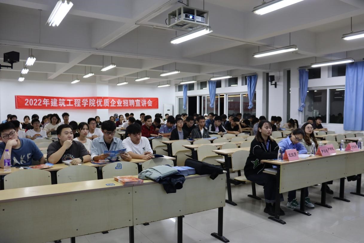 202年10月24日晚,澳门银河官网 建筑工程学院携手中铁建设集团有限公司、中国核工业华兴建设有限公司以及理想连线工程技术集团举办联合招聘宣讲会。100余名学生参会应聘、聆听,8名学生当场被中国核工业华兴建设有限公司招录;2名学生进入理想连线工程技术集团复试环节,10余名学生与中铁建设集团有限公司达成初步就业意向。