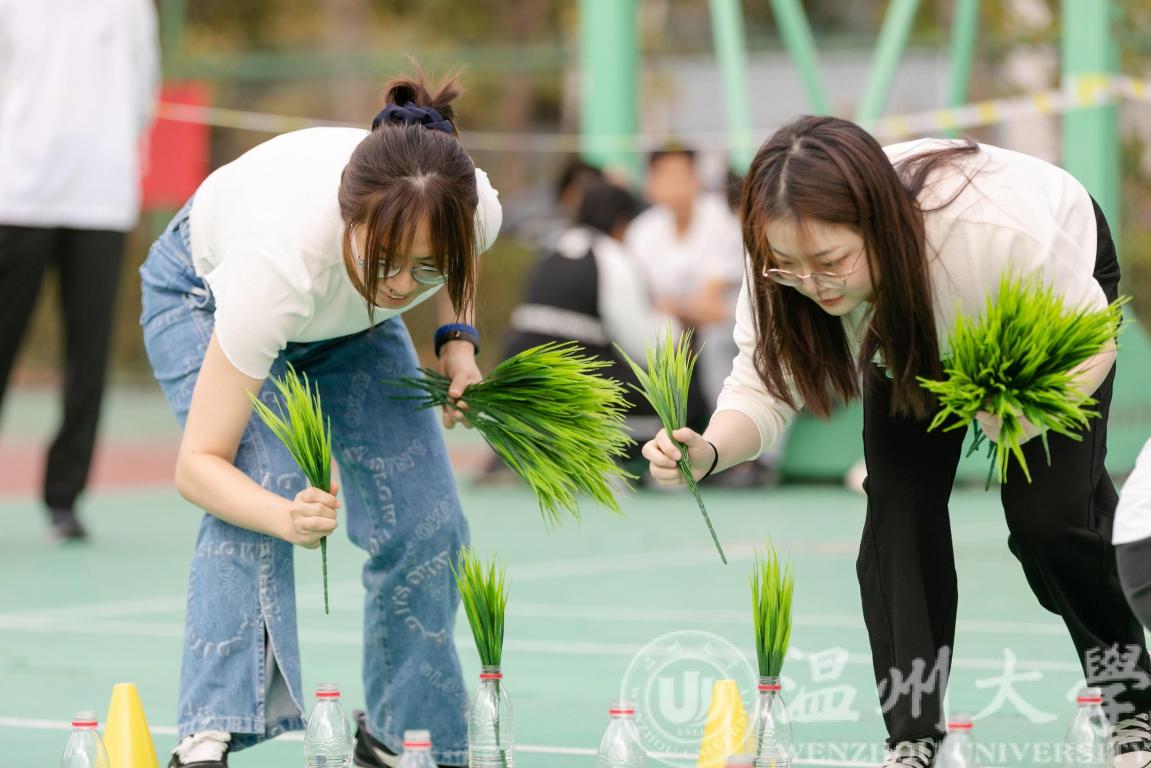 篮球场变身“秧田”,师生们在“自留地”上又快又准地将“秧苗”插入“田地”。大家在运动项目中体验农耕文化,感受劳动艰辛。
