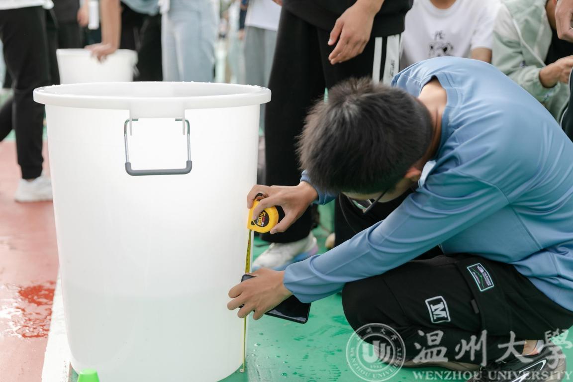 “一担乾坤肩上下,双悬日月臂东西”,头戴斗笠,肩挑扁担,师生摇身一变成为“农夫”,逐一接力,将水倒入指定位置。