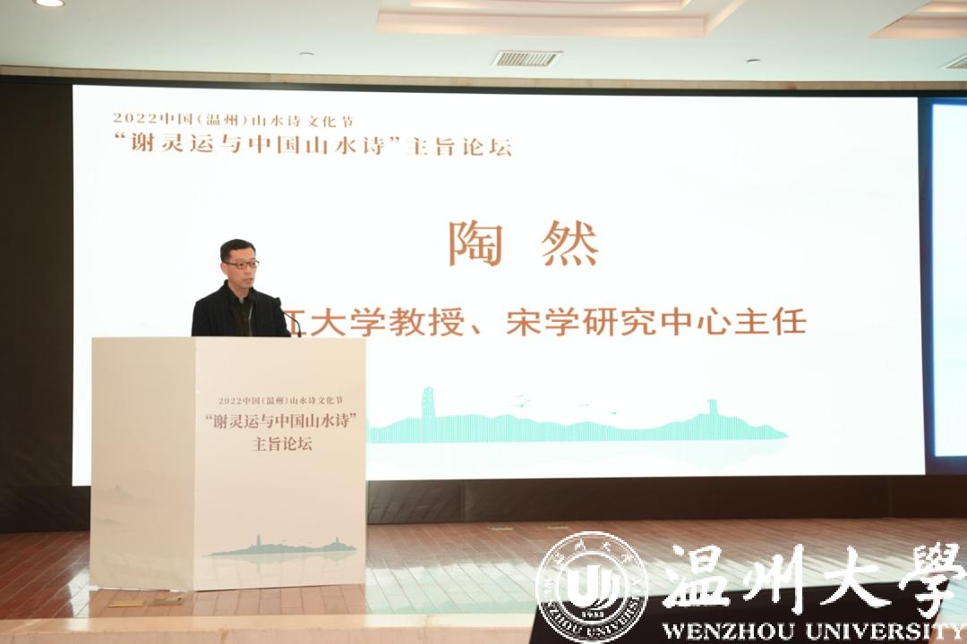 浙江大学教授、中国唐代文学学会副会长胡可先以《谢灵运与浙东诗路》为主题,论述谢灵运在石门、永嘉的山水创作,并指出谢灵运最早的山水诗作产生于他赴永嘉太守任由钱塘江赴永嘉之时,谢灵运诗是浙东诗路的渊源,浙东诗路是唐前山水诗的发源地。