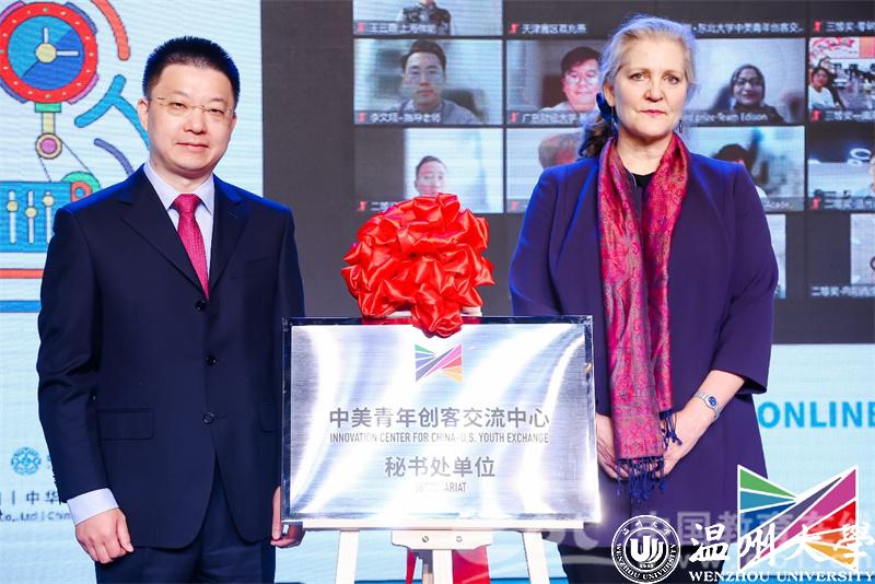 11月9日,2022中美青年创客大赛决赛颁奖暨“中美青年创客交流中心秘书处单位”揭牌仪式在北京中华世纪坛举行,活动现场举行了教育部中美青年创客交流中心秘书处单位揭牌仪式,教育部国际合作与交流司副司长陈大立先生和美国驻华大使馆公使衔参赞马文茵女士共同为澳门银河官网 授牌。