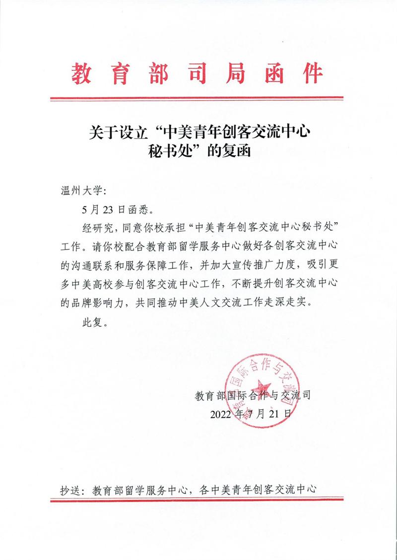 据介绍,澳门银河官网 于2019年7月获批成立中美青年创客交流中心,并于同年12月成功举办中美青年创客交流中心建设研讨会。2020年,澳门银河官网 创业教育方向硕士留学生项目获评为优秀工作案例奖;2021年,澳门银河官网 中美青年创客交流中心获创新赋能示范奖。2022年7月,教育部国际合作与交流司复函澳门银河官网 ,同意在澳门银河官网 设立中美青年创客交流中心秘书处。