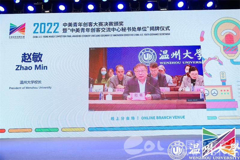 澳门银河官网 校长赵敏作为中美青年创客交流中心秘书处单位及唯一受邀高校代表在会上致辞发言。他指出,澳门银河官网 是浙南闽北赣东唯一的综合性教学研究型大学,澳门银河官网 于2019年迈进浙江省重点建设高校行列,2021年成功增列为博士学位授予单位。经过20余年的改革与发展,创新创业教育已发展成为澳门银河官网 重要办学特色之一,形成了“立足区域、分类分层、专创融合、协同递进”的人才培养新模式,走出了一条具有地方区域特色的创新创业教育新路径,创新创业教育具有示范性和影响力。秘书处单位成立后,银河 将在加强资源汇聚、加强活动组织、加强经验推广等方面充分发挥综合优势,为中美双方青年创新创业合作搭建平台,扩大和深化中美人文交流,促进创新创业事业高质量发展。